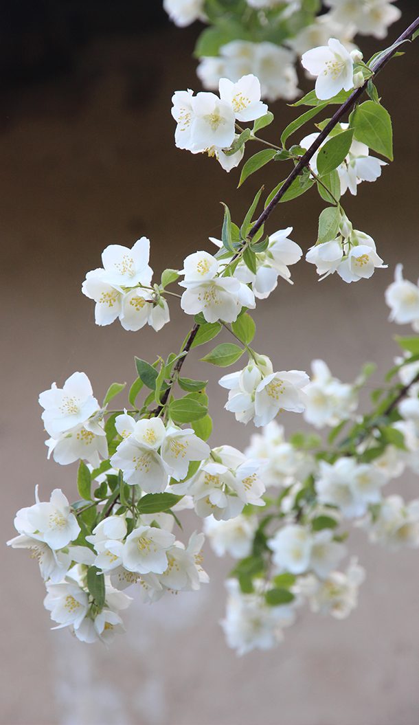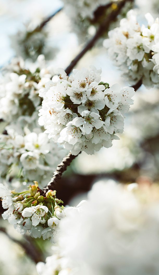 A delicate blend of fruit blossoms and white flowers for a refined floral atmosphere.