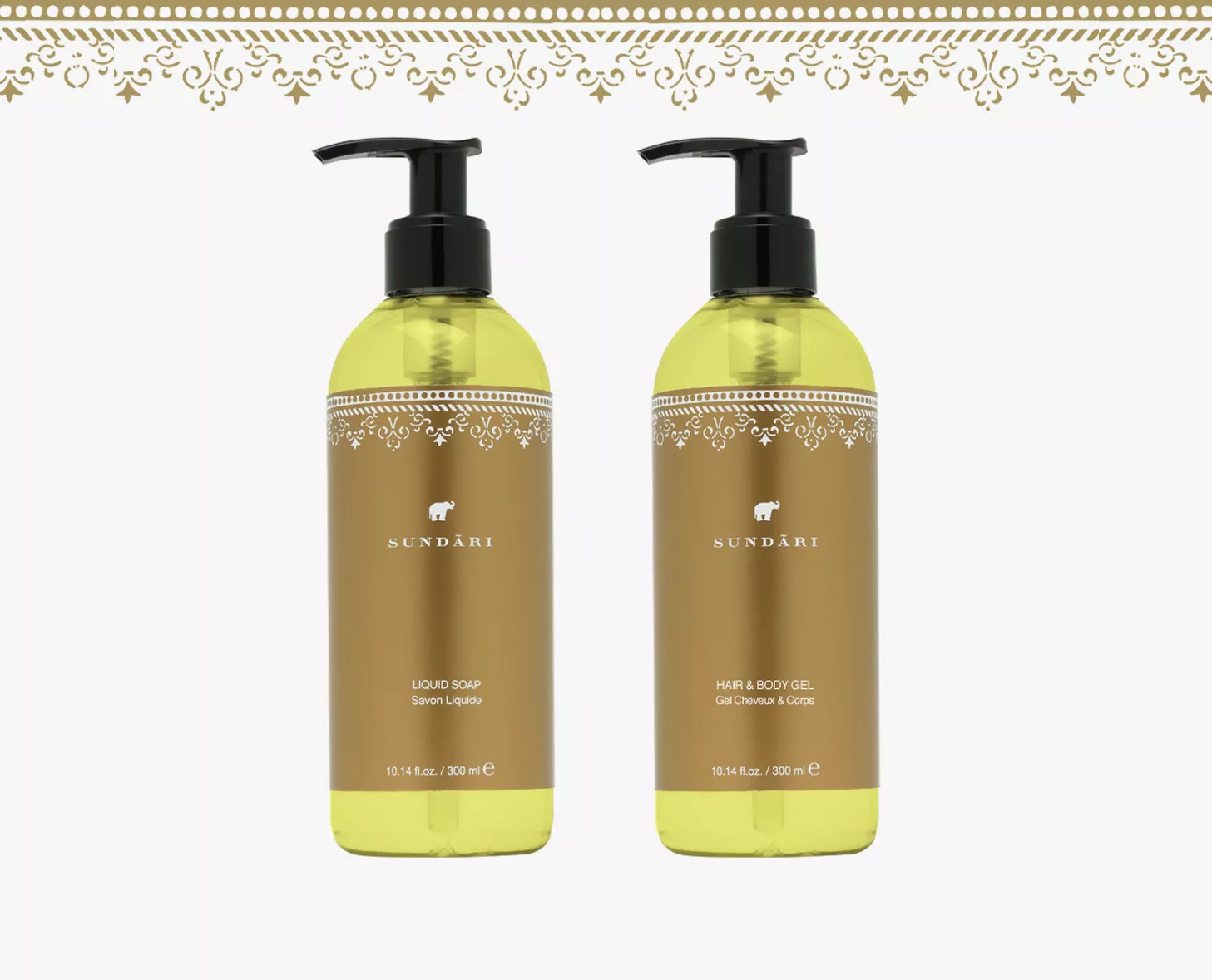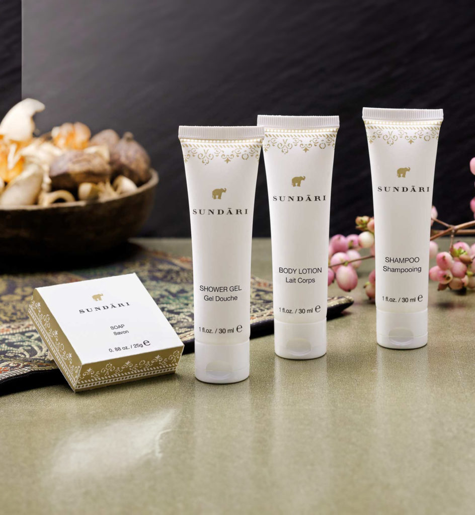 The Sundari hotel line is a celebration of the harmony between nature and science. It is enriched with neem oil, known as the “vegetable pharmacy of India” thanks to its multiple properties. This elegant, harmoniously designed product line proudly displays an elephant logo, a sacred animal in Indian culture, symbolizing wisdom and the quest for holistic beauty.